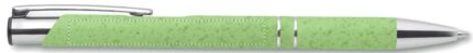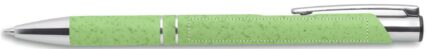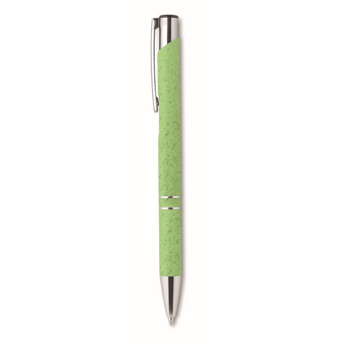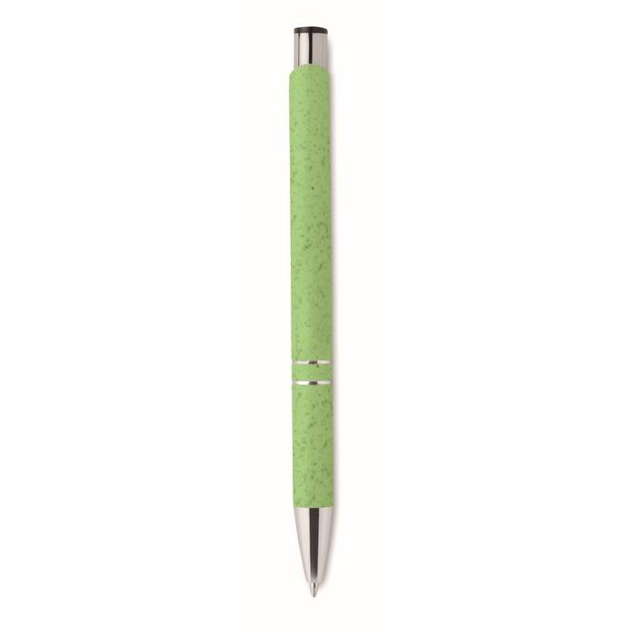 Push button ball pen in 50% wheat straw and 50% ABS material with silver fittings. Blue ink.