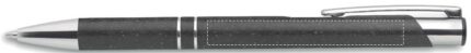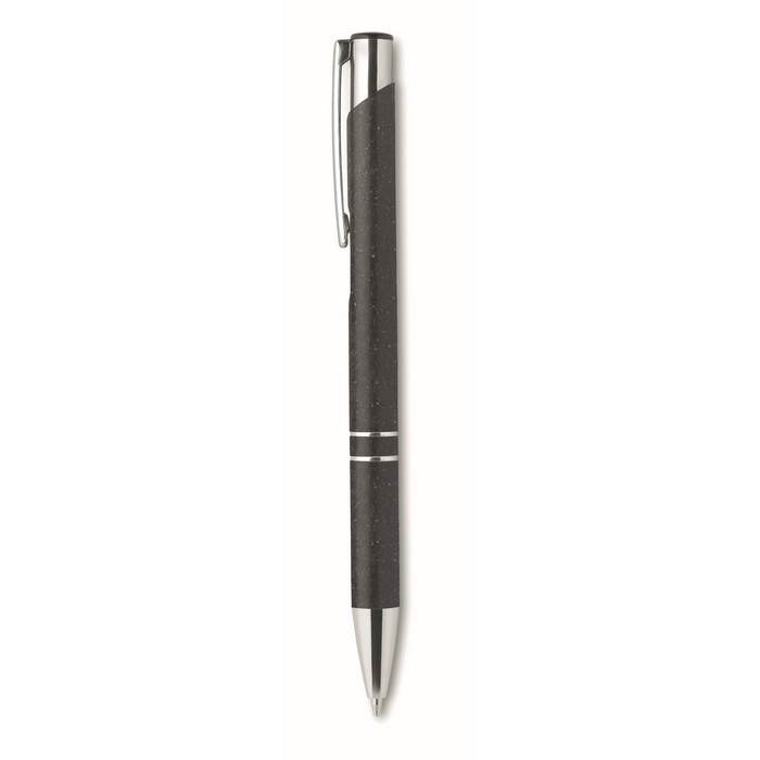 Push button ball pen in 50% wheat straw and 50% ABS material with silver fittings. Blue ink.