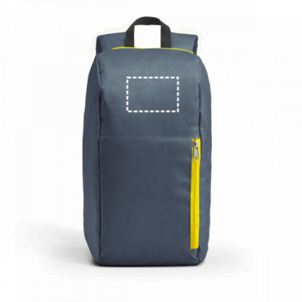 600D backpack with zipped front pocket. 210D padded straps and back with padded back support system. Capacity up to 10 L. 245 x 400 x 115 mm