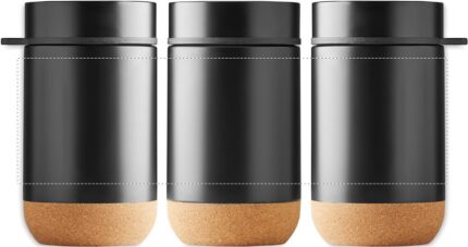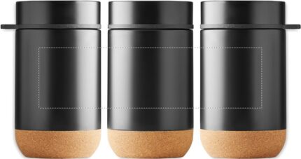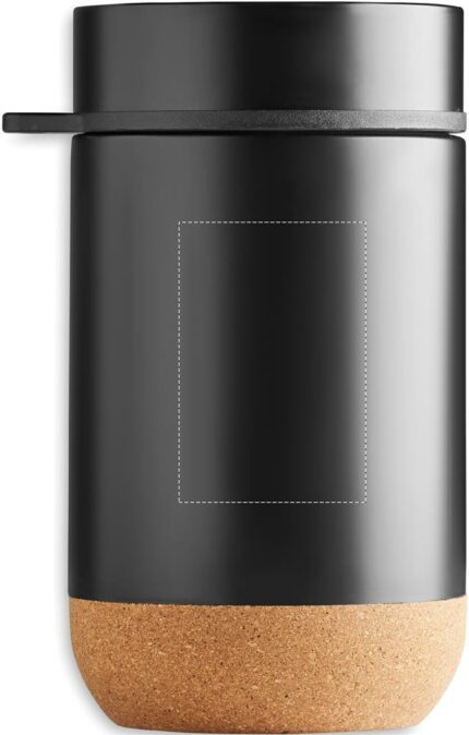 Double wall stainless steel insulated storage jar with a screw top and cork base detail. Includes spoon. Capacity: 400ml.