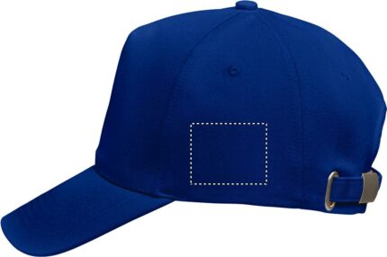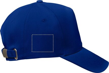 5 panel baseball cap in 250 gr/m² organic brushed cotton with metal adjustable strap back buckle closure.