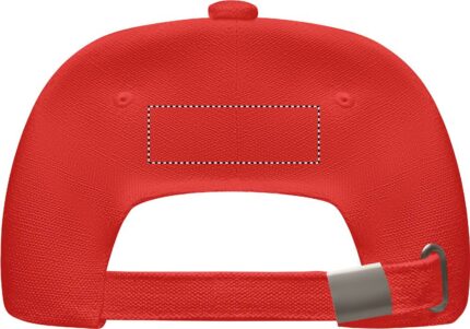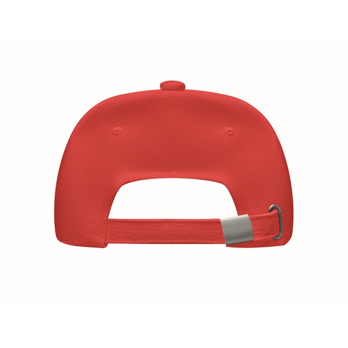 5 panel baseball cap in 250 gr/m² organic brushed cotton with metal adjustable strap back buckle closure.