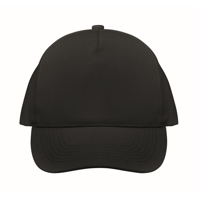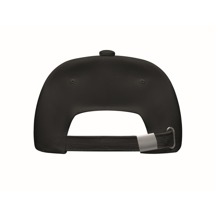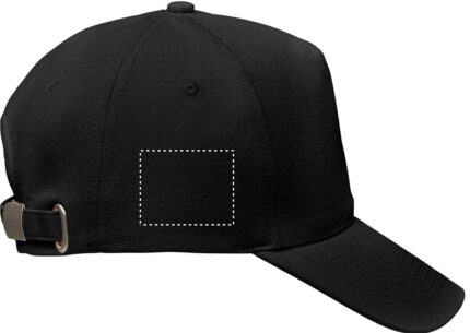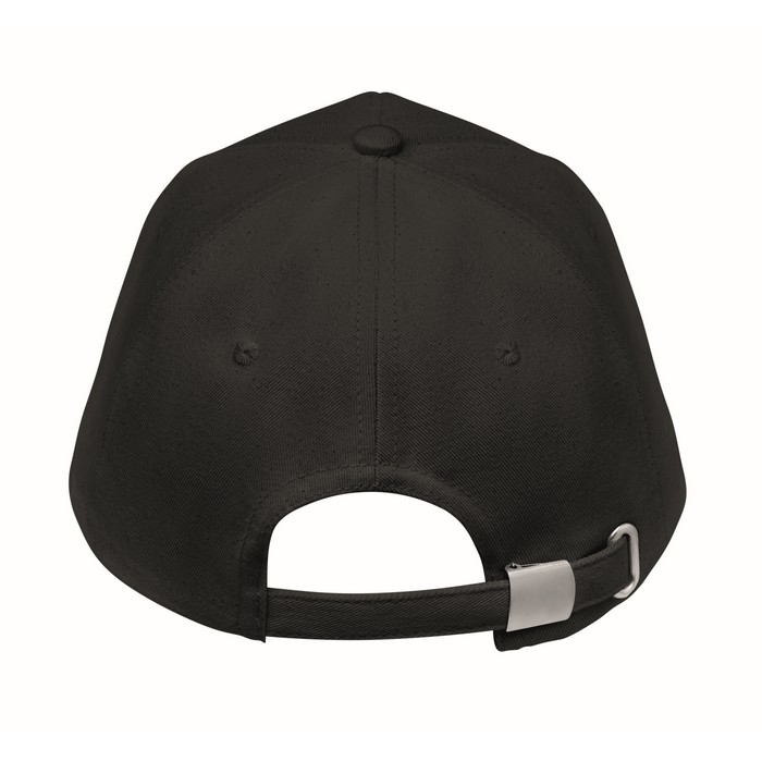 5 panel baseball cap in 250 gr/m² organic brushed cotton with metal adjustable strap back buckle closure.