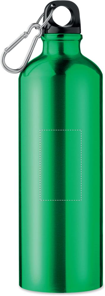 Single wall aluminium bottle with carabineer. Capacity: 750 ml. The carabiner is not for climbing (non professional use). Sublimation print available on white item only. Leak free.