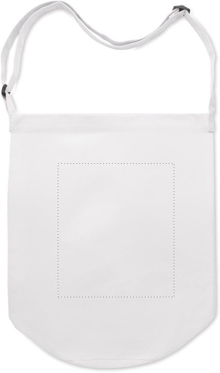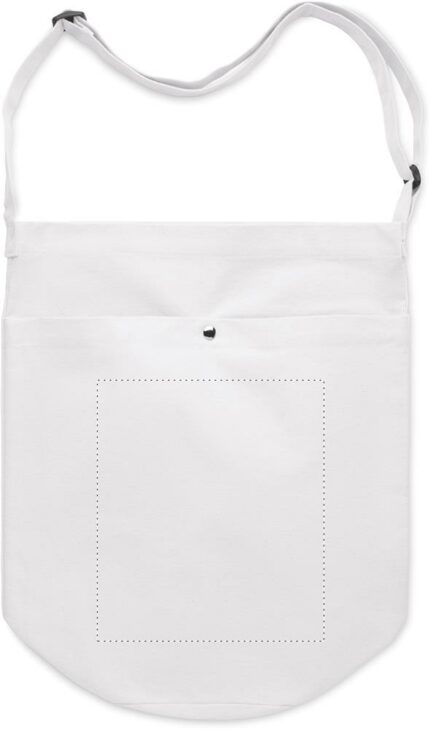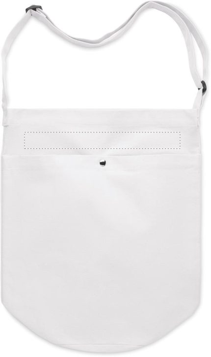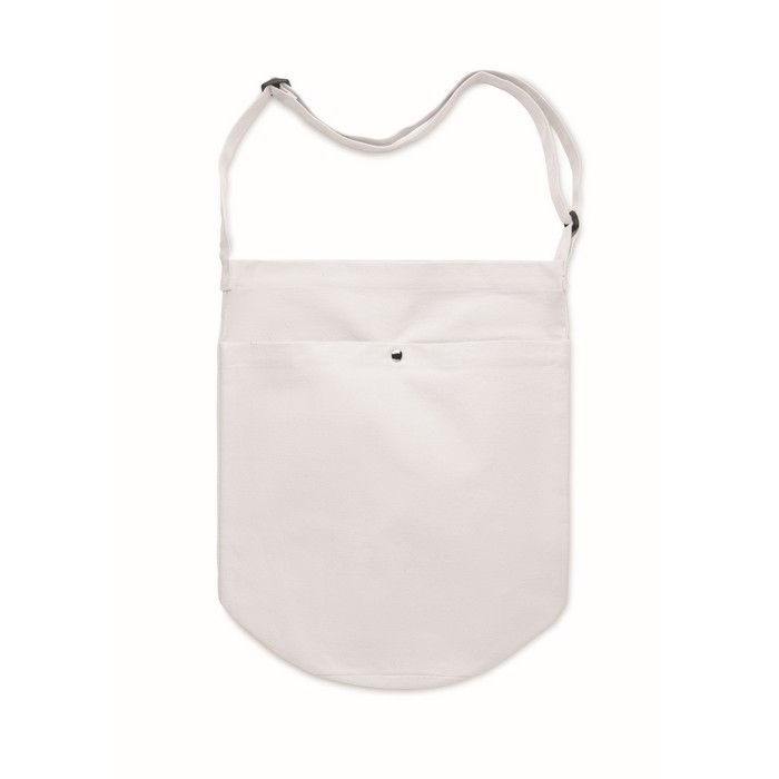 Canvas bag with long adjustable cross shoulder strap and large front pocket with snap closure. Includes inner pocket. 270 gr/m².