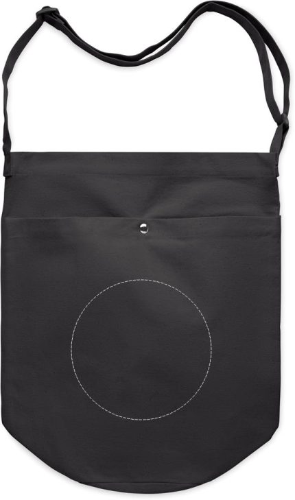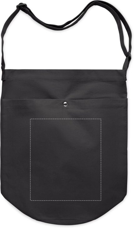 Canvas bag with long adjustable cross shoulder strap and large front pocket with snap closure. Includes inner pocket. 270 gr/m².