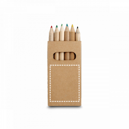 Kraft paper box with 6 colouring pencils. 45 x 90 x 9 mm