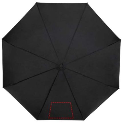 Manual folding umbrella with a recycled PET pongee polyester canopy. The sturdy metal shaft and high quality frame with fibreglass ribs offers maximum flexibility in windy conditions. Supplied with a pouch and can easily fit a handbag or backpack for convenient carrying. Together with the wooden handle and the recycled PET pongee polyester canopy it offers a sustainable choice. Available in an wide variety of contemporary colours with a large decoration area on each of the panels.