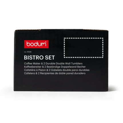 Set with the Bistro press coffee maker and 2 Pavina Outdoor cups. The press is made from stainless steel and durable, rust-resistant material. The glasses are made from high-quality borosilicate glass. The glass is heat resistant and does not alter or impair the natural flavour of the coffee. It has a plunger made of stainless steel, which retains the sediments in the coffee pot while the coffee is being served. The Bistro Set is ideal for preparing a simple, tasty, and eco-friendly coffee. The coffee maker has a capacity of up to 1 L and the cups up to 250 mL. Supplied in a gift box. 141 x 214 x 100 mm
