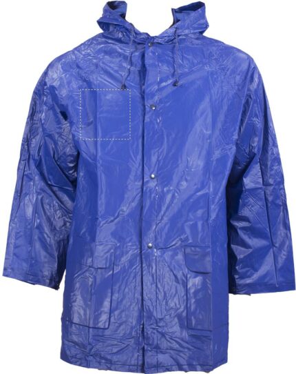 PVC raincoat with hood. Press-stud fastening.