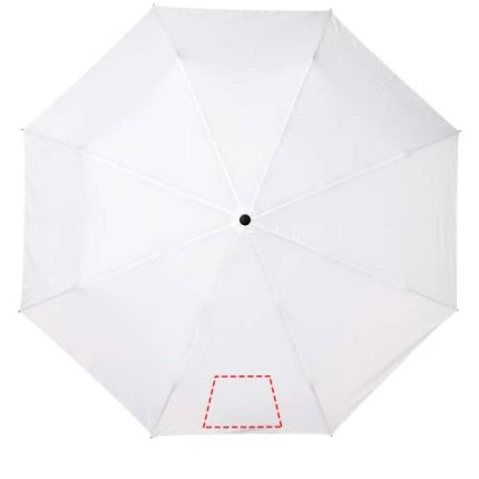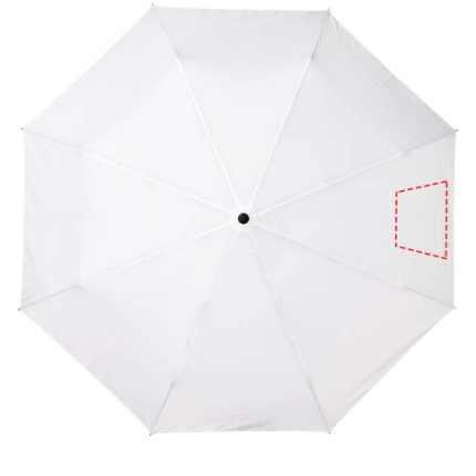 Automatic open and close folding umbrella with a recycled PET pongee polyester canopy. Sturdy metal shaft, a high quality frame with fibreglass ribs offering maximum flexibility in windy conditions. Supplied with a pouch and can easily fit a handbag or backpack for convenient carrying. Together with the wooden handle and the recycled PET pongee polyester canopy it offers a sustainable choice. Available in an wide variety of contemporary colours with a large decoration area on each of the panels.