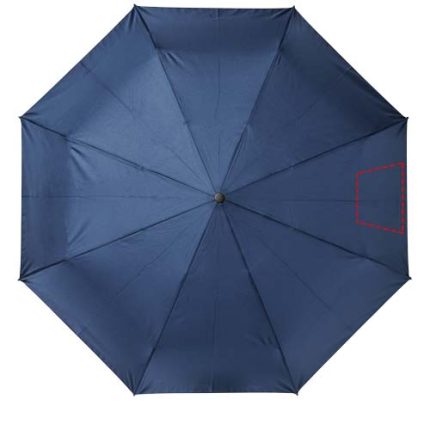 Automatic open and close folding umbrella with a recycled PET pongee polyester canopy. Sturdy metal shaft, a high quality frame with fibreglass ribs offering maximum flexibility in windy conditions. Supplied with a pouch and can easily fit a handbag or backpack for convenient carrying. Together with the wooden handle and the recycled PET pongee polyester canopy it offers a sustainable choice. Available in an wide variety of contemporary colours with a large decoration area on each of the panels.