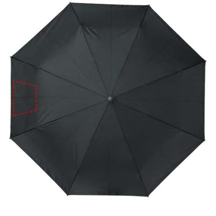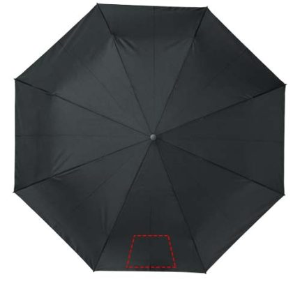 Automatic open and close folding umbrella with a recycled PET pongee polyester canopy. Sturdy metal shaft, a high quality frame with fibreglass ribs offering maximum flexibility in windy conditions. Supplied with a pouch and can easily fit a handbag or backpack for convenient carrying. Together with the wooden handle and the recycled PET pongee polyester canopy it offers a sustainable choice. Available in an wide variety of contemporary colours with a large decoration area on each of the panels.