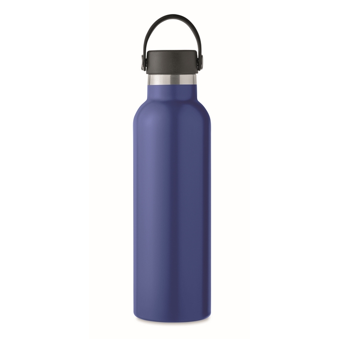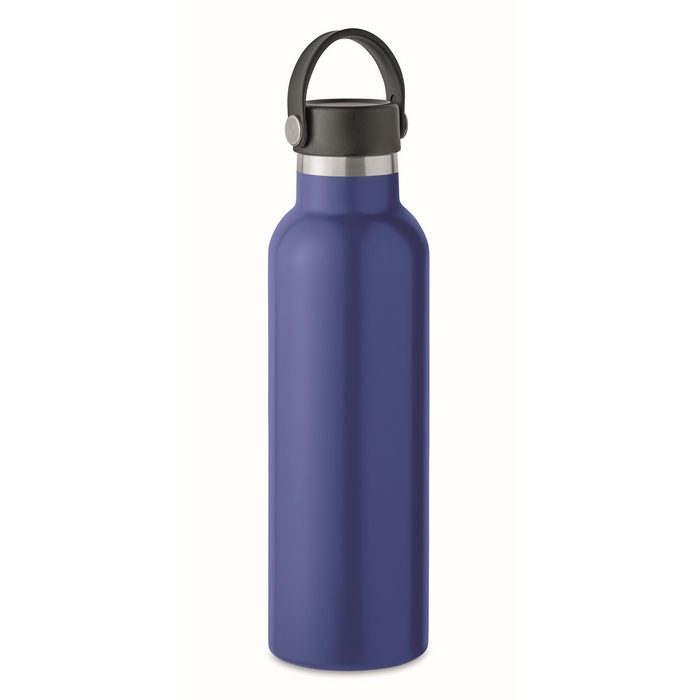 Double wall recycled stainless steel (90% recycled stainless and 10% stainless steel) insulated vacuum bottle with non-leak screw cap and additional interchangeable built-in straw cap. Capacity: 700 ml.