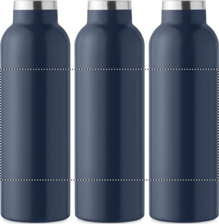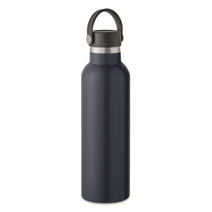 Double wall recycled stainless steel (90% recycled stainless and 10% stainless steel) insulated vacuum bottle with non-leak screw cap and additional interchangeable built-in straw cap. Capacity: 700 ml.