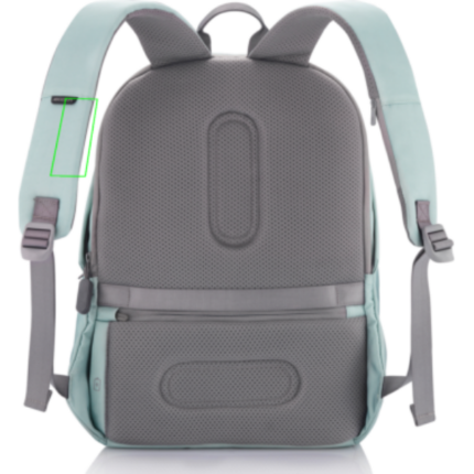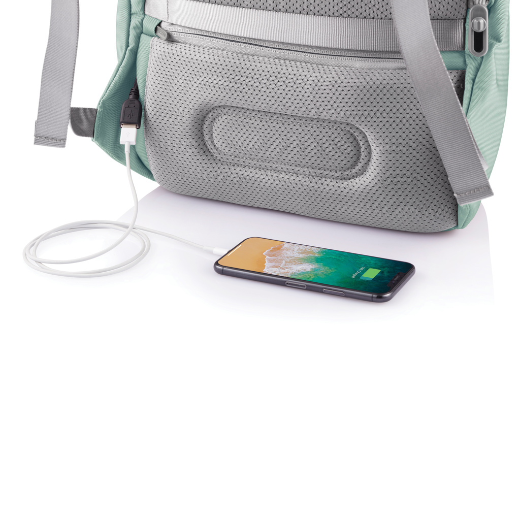 For university, school, work or your next trip, the Bobby Soft Backpack is ready! The iconic Bobby anti-theft design with hidden RFID protected pockets, no front access and hidden zippers is now complemented with a safe zipper puller on the main compartment. In the main compartment, you can easily organise your gear with a padded 15.6″ laptop compartment, notebook pocket, smart pockets and a keychain clip. The top of the backpack is expandable giving additional space. This backpack is also equipped with an integrated USB charging port and water repellent material. Made from R-pet materials and AWARE™ tracer. With AWARE™, the use of genuine recycled fabric materials and water reduction is guaranteed, by using the AWARE disruptive physical tracer and blockchain technology. Each Bobby Soft saves 23L of water and reuses 39 plastic bottles. Registered design®