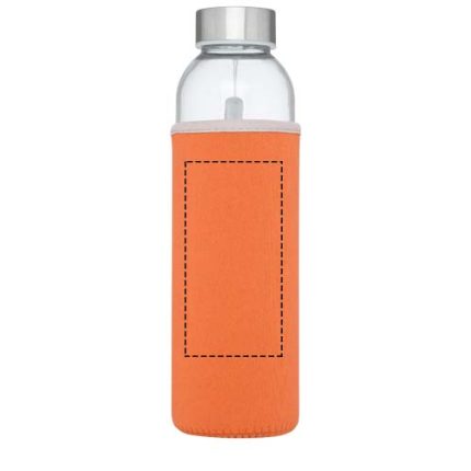 Single-walled glass bottle with screw-on lid. The lid features a strap for easy carrying, as well as a neoprene sleeve. Recommended for cold beverages. Do not freeze, do not microwave. Volume capacity is 500 ml. Presented in a gift box.