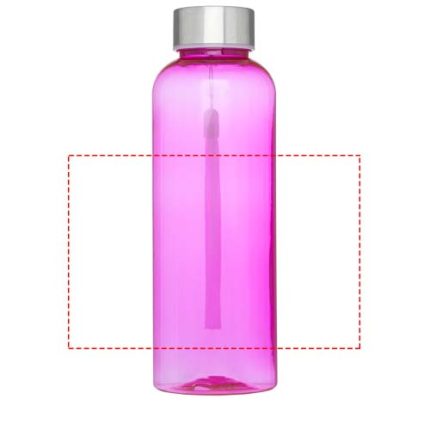 Single-walled water bottle in durable material with screw-on lid. Shatter, stain, and odour resistant. Lid features a strap for easy carrying. BPA free. Volume capacity is 500 ml.