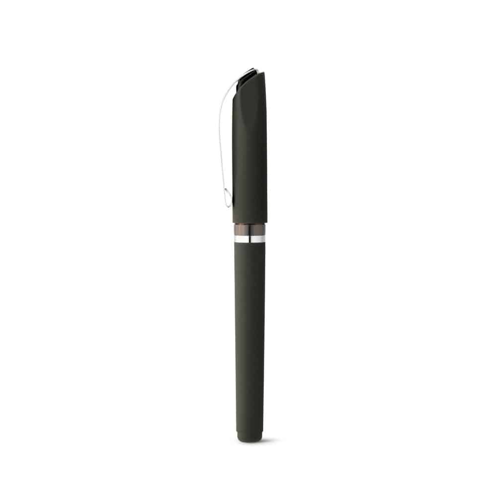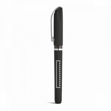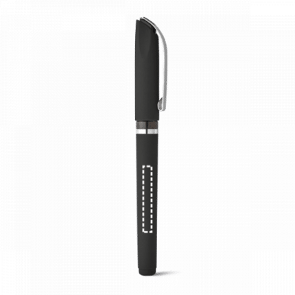 ABS ball pen with rubber finish, metal clip and anti slip grip. Black ink. Gel refill included. ø12 x 140 mm