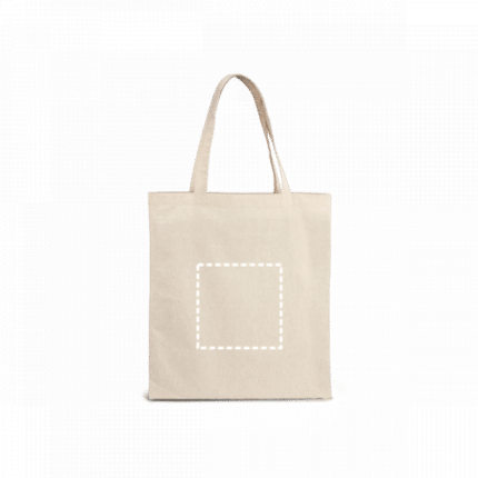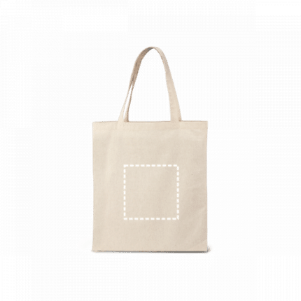 100% cotton bag (140 g/m²) with 60 cm handles. 375 x 415 mm