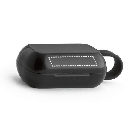 ABS wireless stereo earbuds with 5’0 BT transmission, built-in microphone and autonomy up to 3h. The charging box, with a 240 mAh battery, is also in ABS and contains a silicone clip that allows you to carry and charge the earphones in an easy and comfortable way. USB cable to charge. Supplied in a kraft paper gift box. 77 x 36 x 30 mm