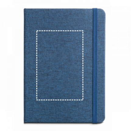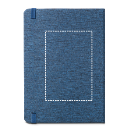 A5 notepad with PET (50% rPET) hardcover. This notepad has 192 lined ivory pages from a sustainable forest management, bookmark ribbon, elastic band and inner pocket. 140 x 210 mm