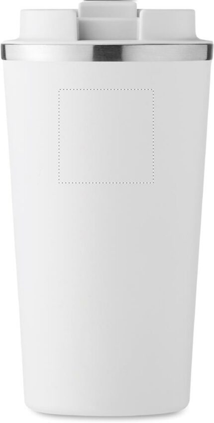 Double wall stainless steel tumbler with PP lid. Capacity: 510 ml. Leak free.