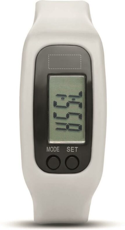 Pedometer bracelet. Includes step, distance, time and calorie counter. 1 AG10 cell battery included.