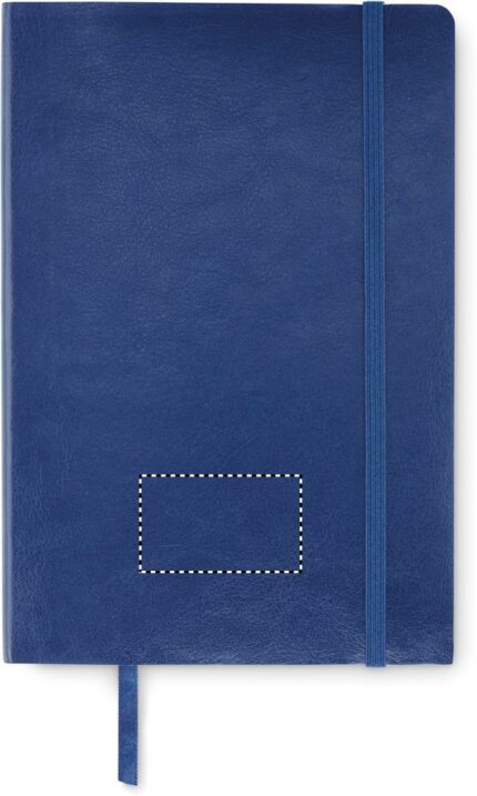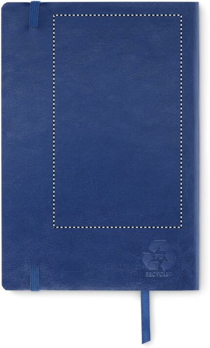 A5 notebook with soft recycled PU (81% recycled polyester and 19% PU) cover. Casebound. 160 lined pages (80 sheets). Matching elastic closure strap and ribbon bookmark. Expandable inner pocket in the back.