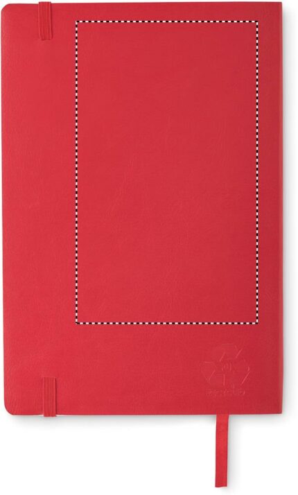 A5 notebook with soft recycled PU (81% recycled polyester and 19% PU) cover. Casebound. 160 lined pages (80 sheets). Matching elastic closure strap and ribbon bookmark. Expandable inner pocket in the back.