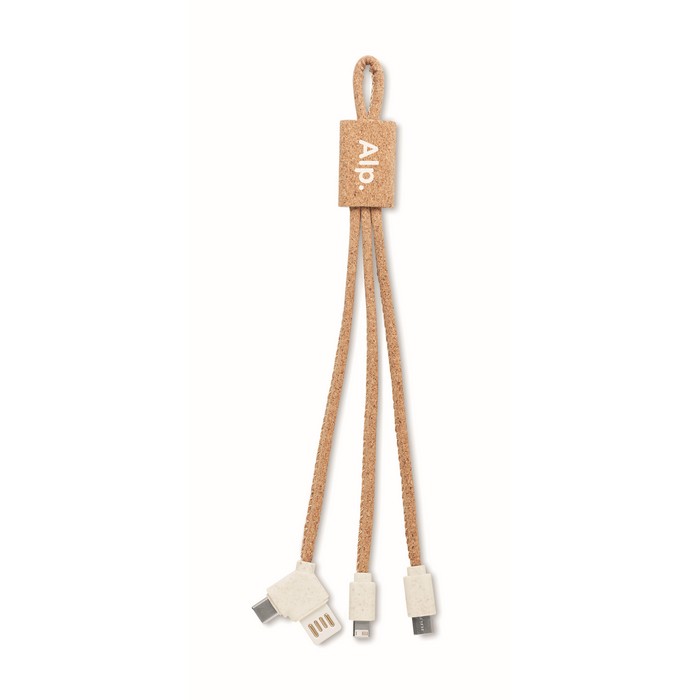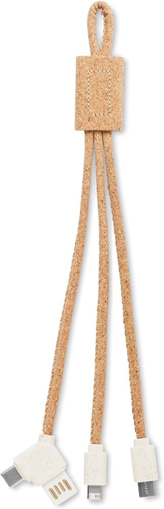 Cork 3-in-1 charging cable. Input Type A and type C. Output 3 types.