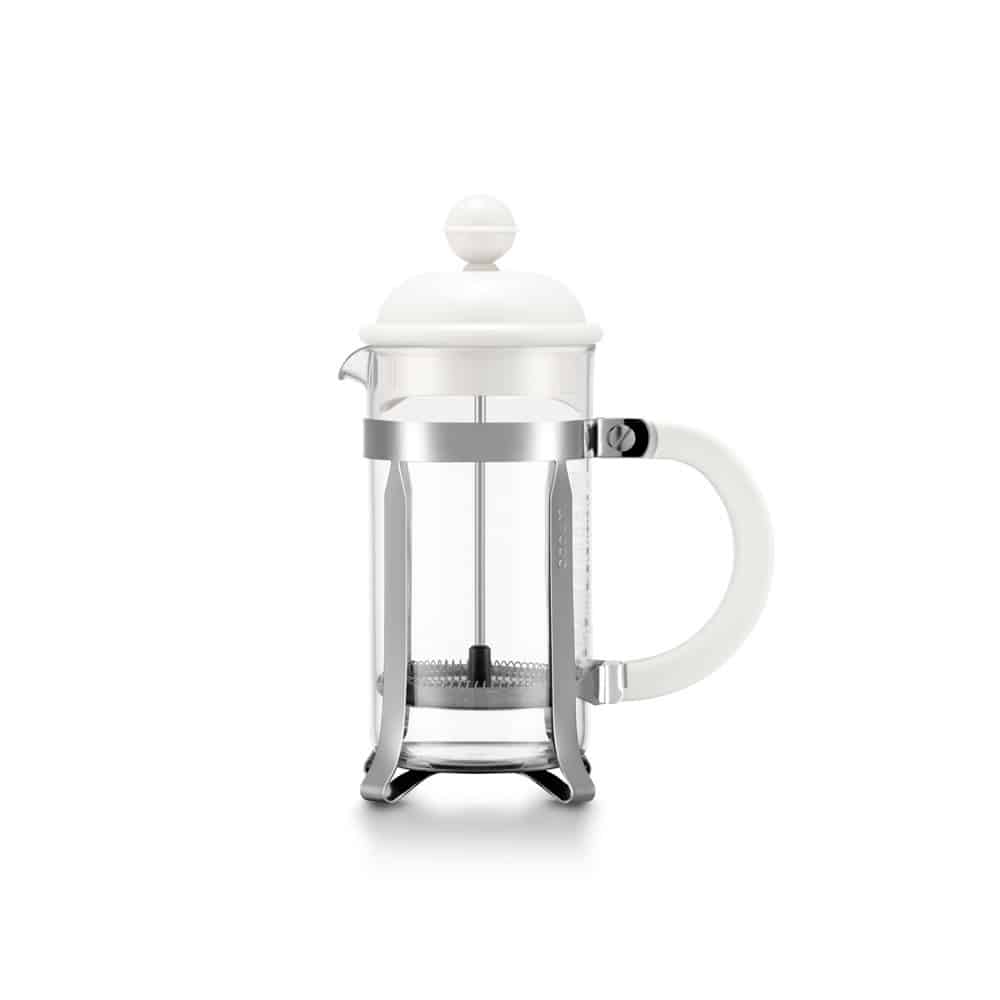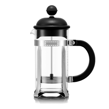 French press coffee maker with a high-quality borosilicate glass container. The glass is heat resistant and does not alter the natural flavour of the coffee. It has a reusable, stainless steel plunger and filter that extracts all oils from the coffee beans to leave minimal sediment in the cup. The chrome-plated stainless steel frame protects the glass carafe while the plastic lid and handle allow for safe and convenient use. The Caffettiera combines the ease and speed of preparation with the purity of flavour of a press coffee maker. It can hold up to 350 mL. Supplied in a gift box. 132 x 195 x 75 mm