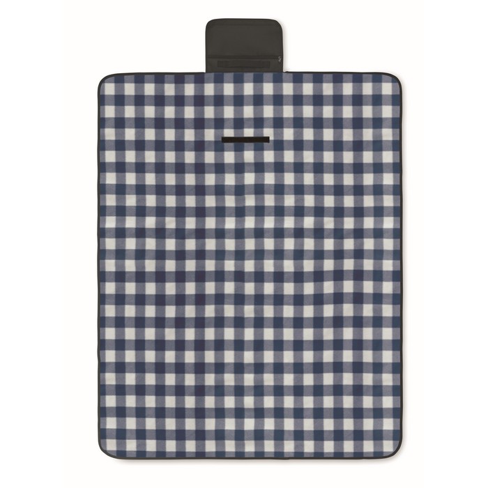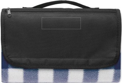 Foldable RPET 150 gr/m² polar fleece picnic blanket with water resistant coated PEVA reverse side. Includes a front zipper pocket and short carry strap.