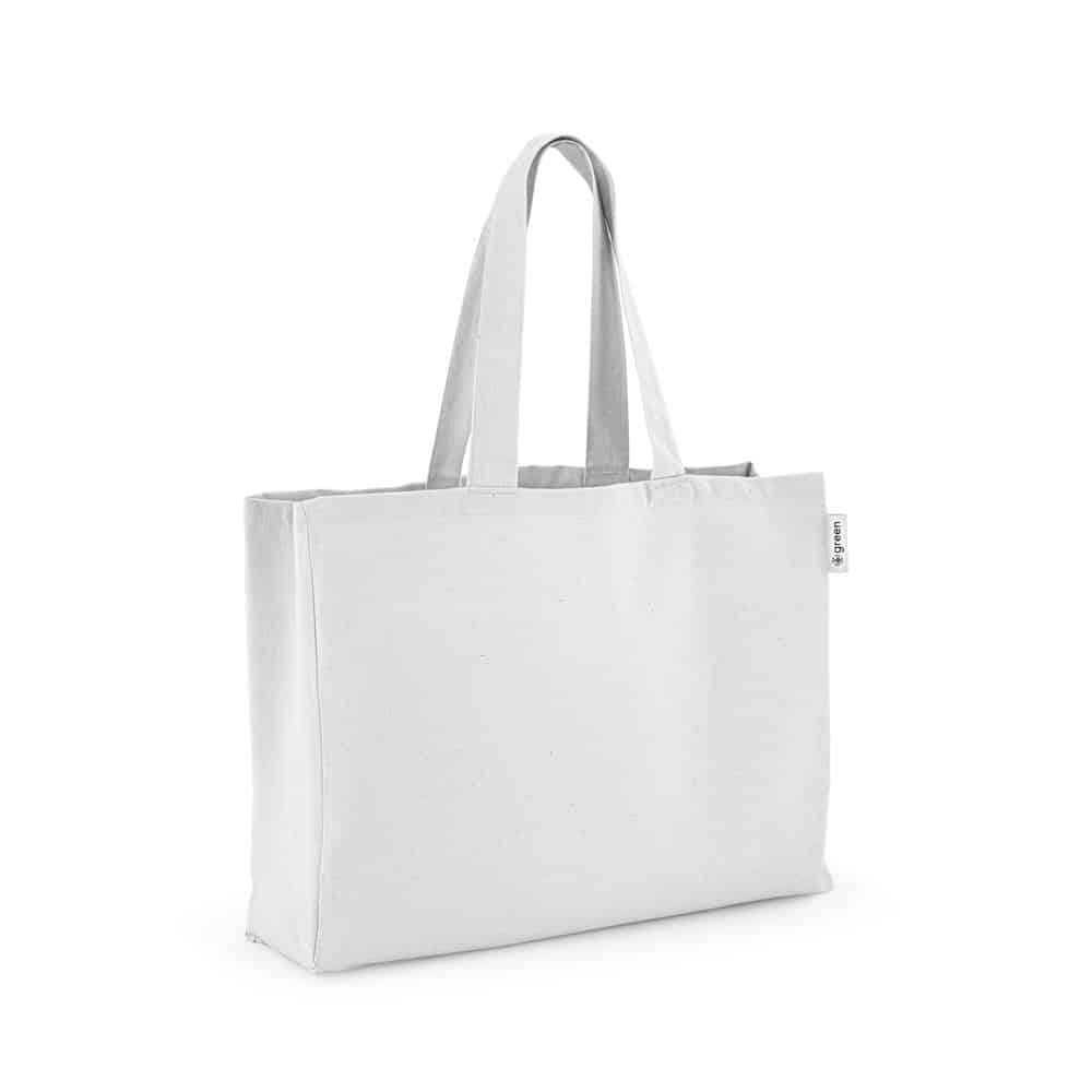 Bag (280 g/ m²) in cotton (50%) and recycled cotton (50%) with 62cm handles. 500 x 370 x 120 mm