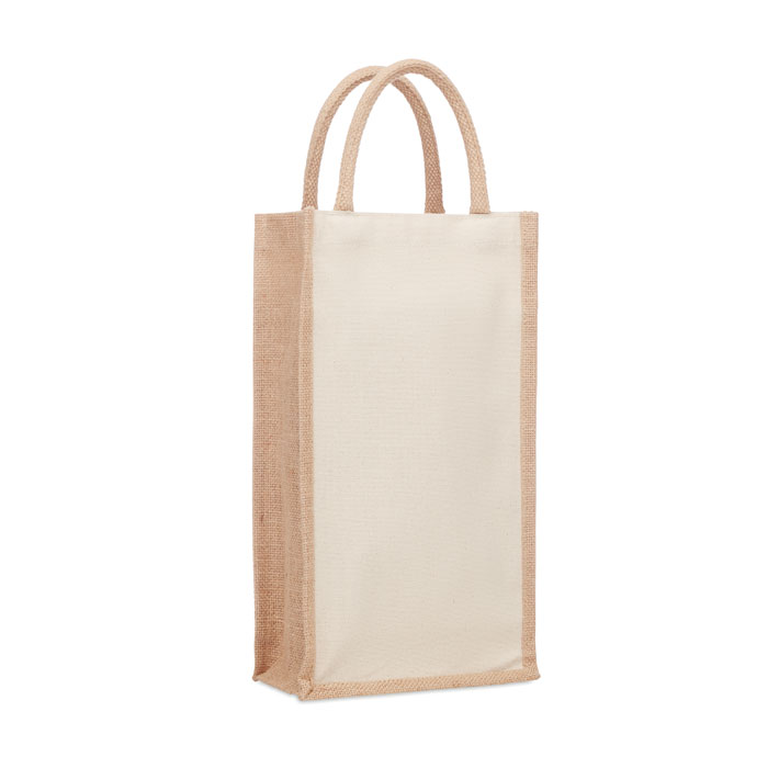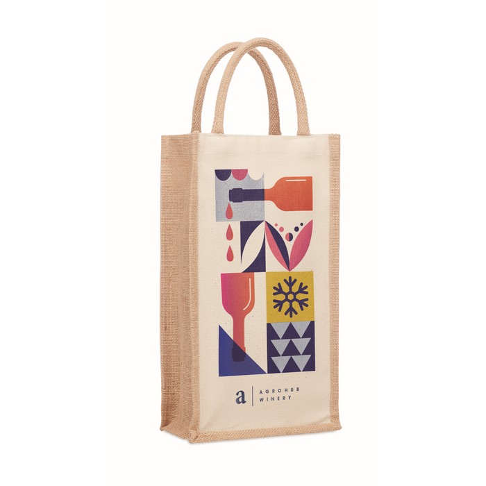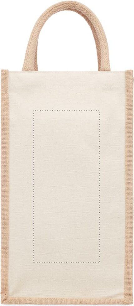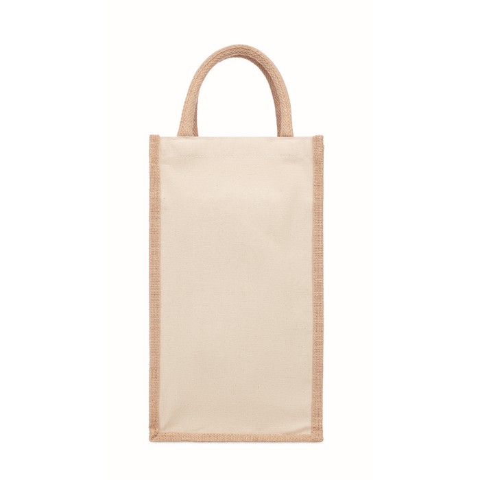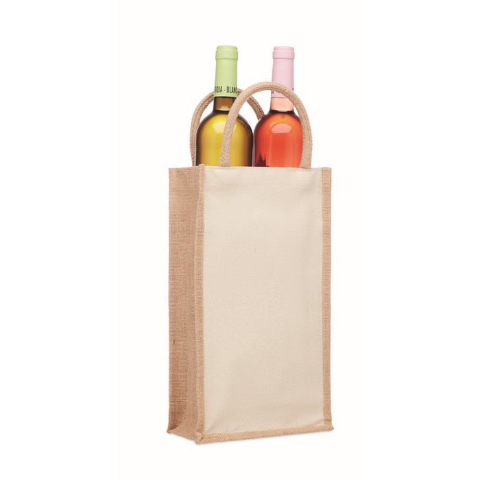 Wine gift bag for two bottles in jute and 320 gr/m² canvas.