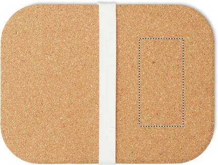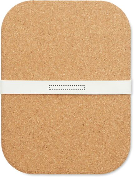 High borosilicate glass lunch box with cork lid and silicone band. Capacity: 830 ml.