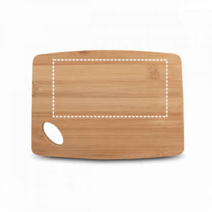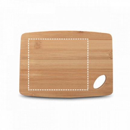 Bamboo serving board. The handle allows you to hang the board. Ideal for serving food. 200 x 143 x 9 mm
