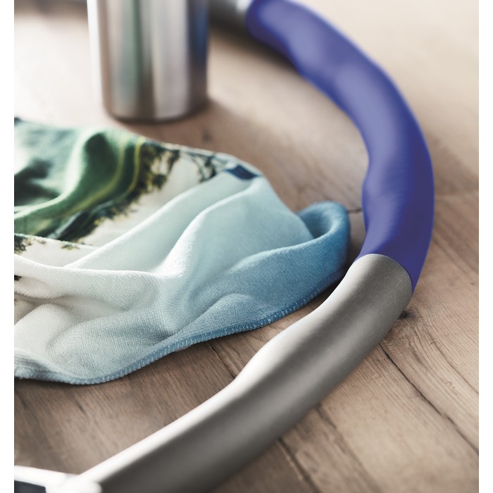 Detachable and adjustable (850 gr) hula hoop presented in RPET pouch. Maximum diameter 95cm.
