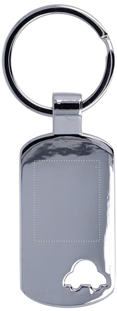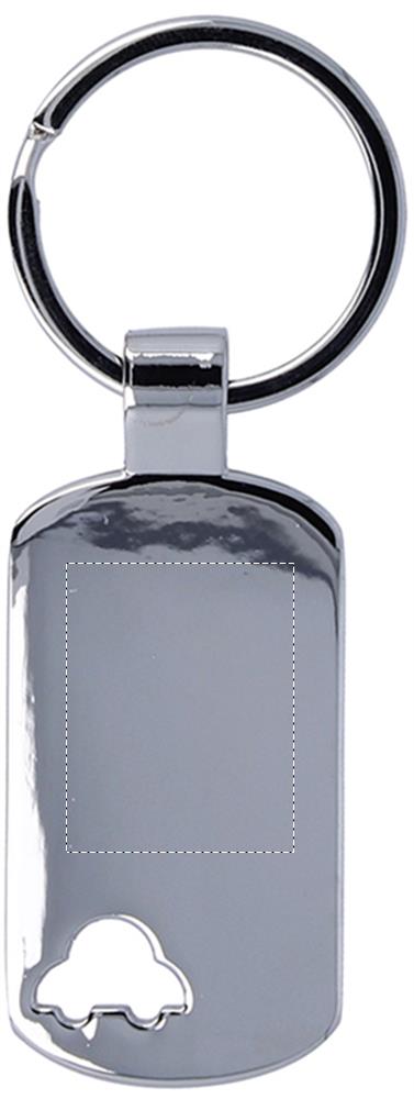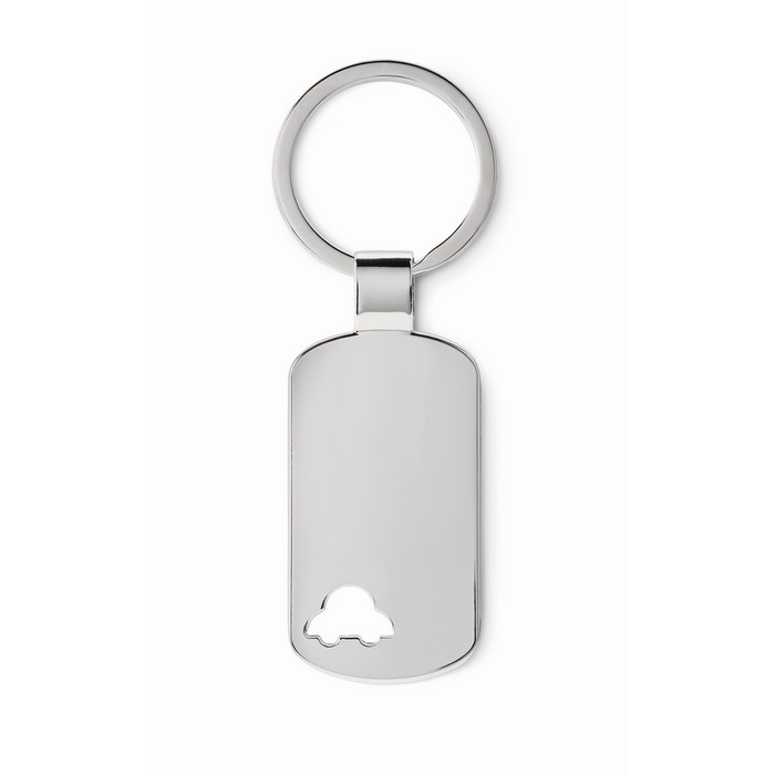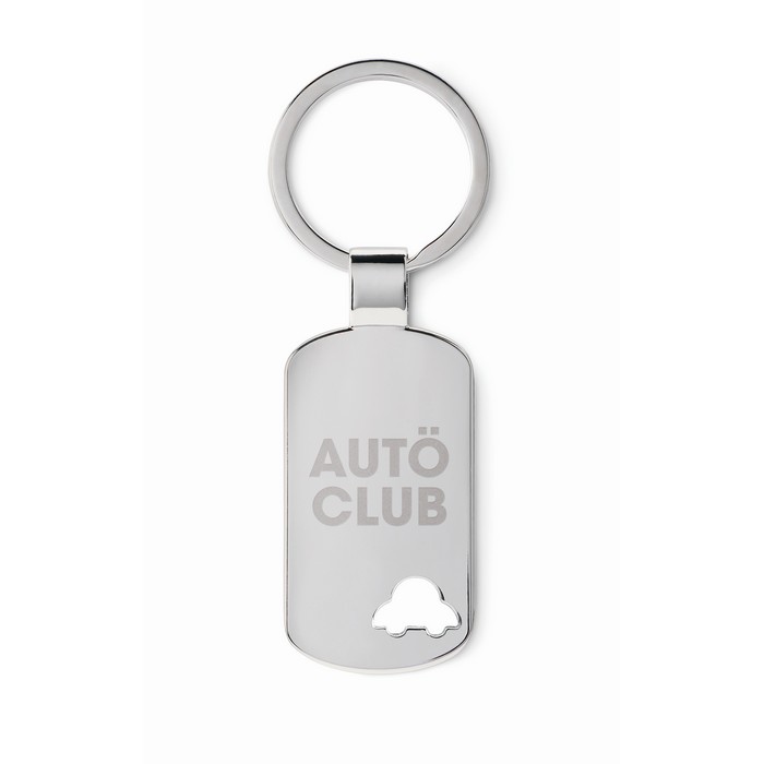 Metal key ring with car detail on the bottom. Individually packed in box.