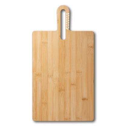 Large bamboo serving board with handle, very versatile. Supplied with a kraft gift box. 240 x 450 x 12 mm