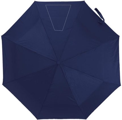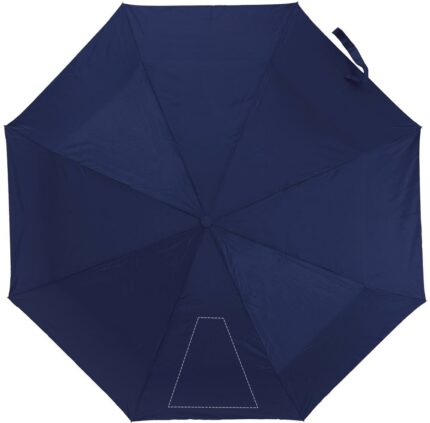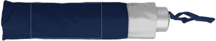 21 inch manual open umbrella in 190T polyester with zincify plating metal shaft and tips. Black plating metal ribs. Panels in colour with silver coating on back. Plastic handle in color with silver rim and black wrist strap. 3 sections fold. Includes matching pouch with silver trim. Manual closure.