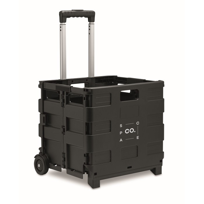 PP folding shopping container trolley with steel handle. Max. load: 25 kg. Capacity: 32 L.