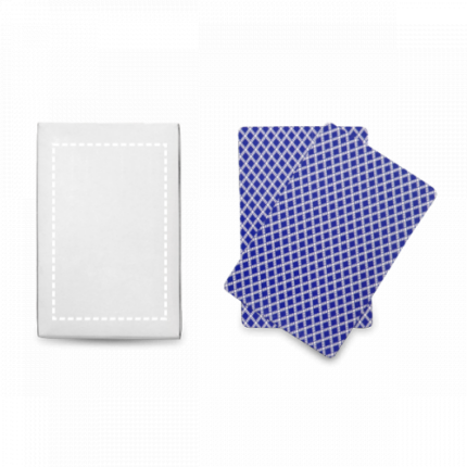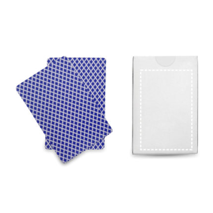 Deck of 54 cards in laminated paper. Supplied in a paper box. 89 x 59 x 17 mm