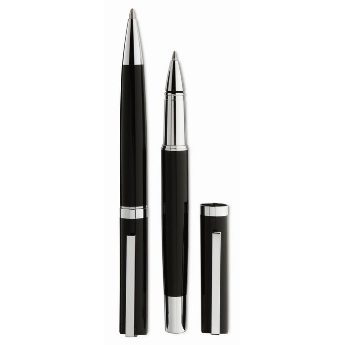 Pen set in gift box. Twist ball pen and roller pen. Blue ink.