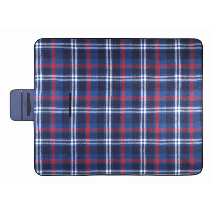 Foldable acrylic picnic blanket with water resistant coated EPE reverse side.