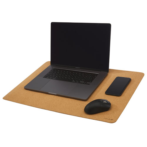 Large desk pad made of durable cork for a nice feeling and smooth handling of the mouse, making it the perfect desk accessory. Size: 60 cm x 40 cm x 3 mm. Delivered in a premium kraft paper box with a colourful sticker.