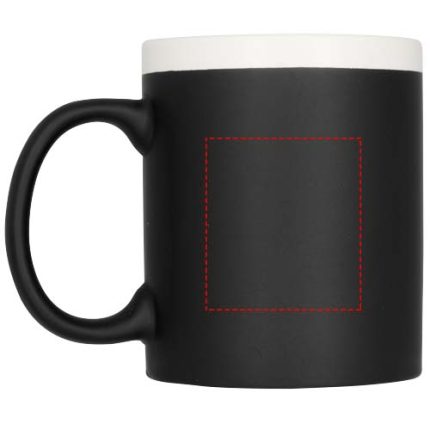 This mug can be personalized by writing on the blackboard finish with chalk. The chalk is included. Dishwasher safe in accordance with EN12875-1 (at least 125 washing cycles) for all decoration methods. Volume capacity is 330ml. Presented in a white carton box.