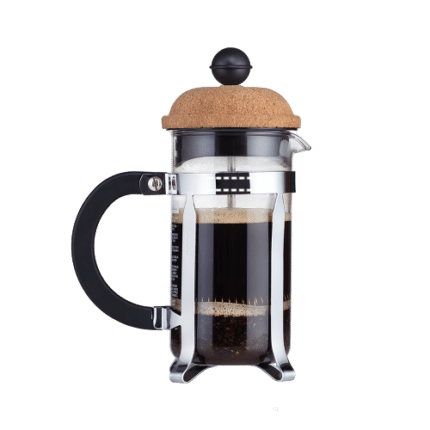 French press coffee maker with a high-quality borosilicate glass container and cork lid. The glass is heat resistant and does not alter or impair the natural flavour of the coffee. The integral stainless steel plunger prevents the beans from falling out of the coffee maker while the coffee is served. The chrome frame and lid have a durable and attractive shiny finish. The PP matte handle provides a comfortable grip which accentuates the quality of the design. The French press system is appreciated by coffee aficionados worldwide for its simplicity of preparation and purity of flavour. The Chambord coffee maker has a timeless design and is produced with the expertise and superior quality that enthusiasts have come to expect. It has a capacity of up to 350 mL. Supplied in a gift card sleeve. 111 x 168 x 80 mm