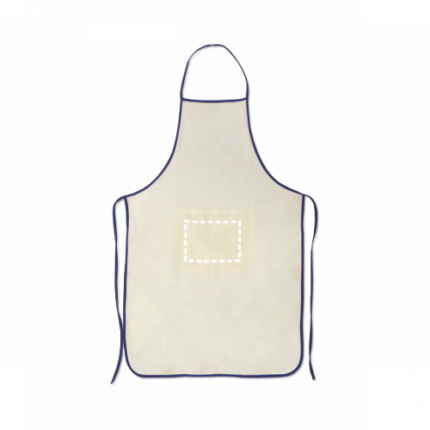 100% cotton apron with soft fabric, natural colour with coloured trim. Apron with 1 front pocket and adjustable straps. 600 x 900 mm | Pocket: 250 x 200 mm