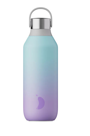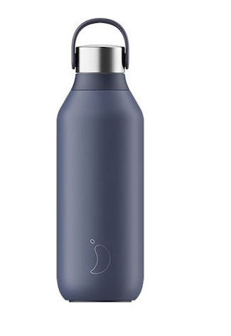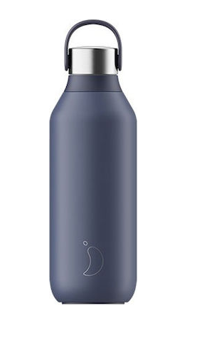 Ένα μπλε μπουκάλι νερού CHILLYS 2 με ένα ασημένιο καπάκι